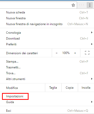 Se invece come browser utilizzi Chrome, clicca sui tre pallini in alto a destra e poi su Impostazioni, una volta che si apre la finestra